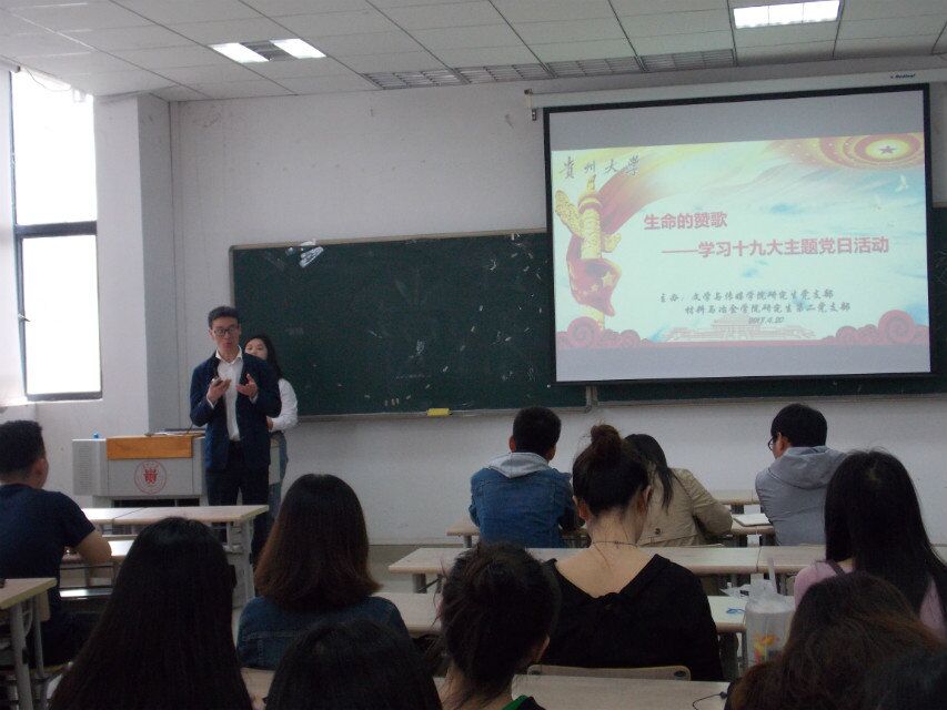 为推进“两学一做”学习教育常态化制度化基本制度安排,深入贯彻党的十九大精神,加强基层党组织建设的精神,增强党的组织生活活力。4月22日,文学与传媒学院、材料与冶金学院全体研究生党员在材料与冶金学院开展“生命的赞歌——学习党的十九大主题党日”活动。材料与冶金学院党委副书记张瑞良、文学与传媒学院研究生党支部书记吴卿出席此次活动,材料与冶金学院研究生党支部书记李叶珠主持。
