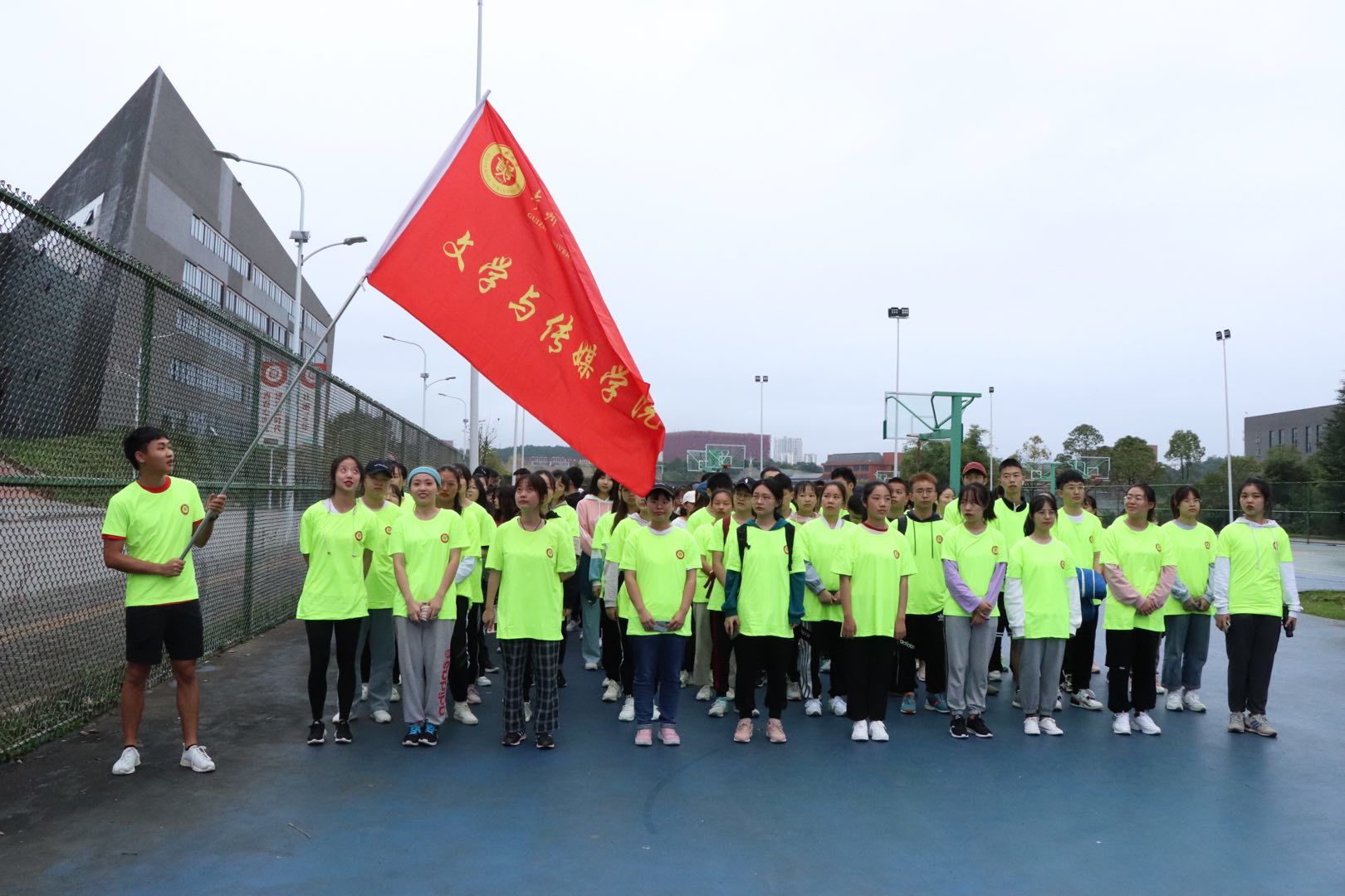 10月1日上午8:30,我院组织参与长跑活动的同学在东校区篮球场集合整队。“后面的同学与第一排对齐!”天气虽冷,空中飘着细雨,文传学子的热情却丝毫不减,院旗像同学们昂扬的斗志一般,随风舞动。