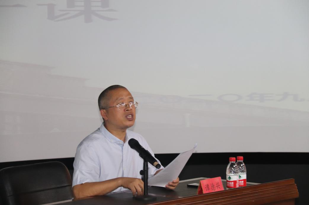 9月12日下午,文学与传媒院在慎思楼情景模拟实验室举行了研究生入学教育“院长第一课”,文学与传媒学院副院长(主持工作)谭德兴教授开讲。讲座由研究生思想政治辅导员姬丹主持,学院全体研究生参加。