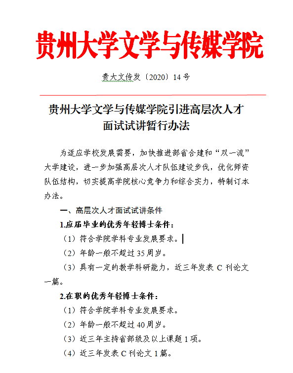 贵州大学文学与传媒学院引进高层次人才面试试讲暂行办法