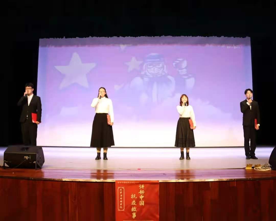 2020年11月27日下午两点半,由共青团贵州大学委员会主办,贵州大学文学与传媒学院团委、学生会承办的“讲好中国故事”系列活动之“讲好中国抗疫故事”于贵州大学音乐学院实验剧场举行。