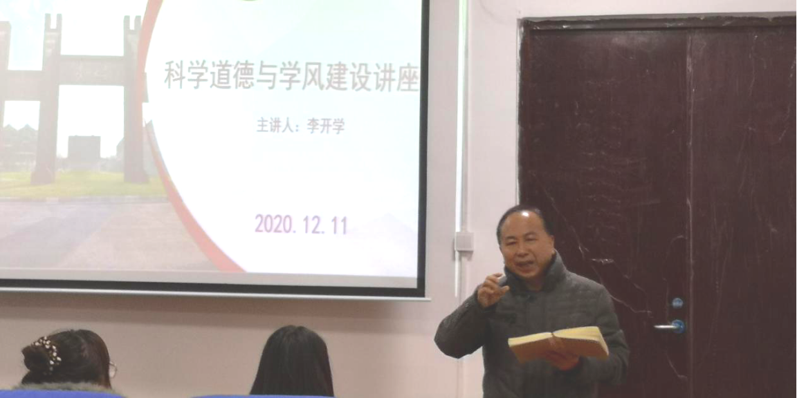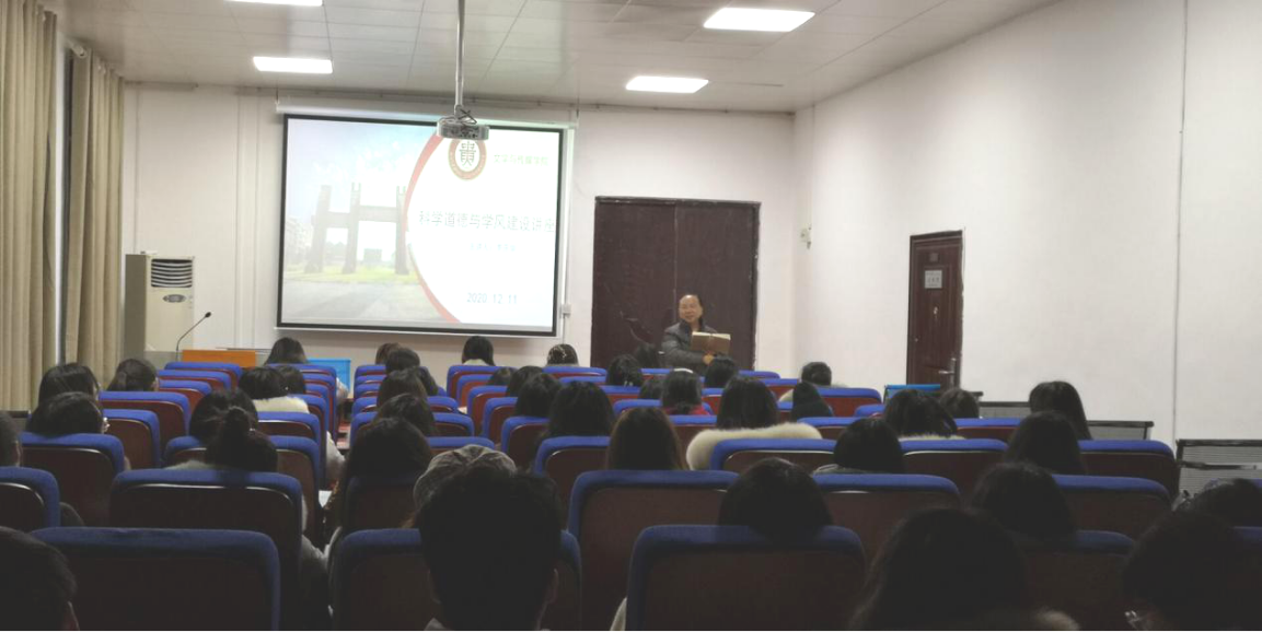 12月11日下午,贵州大学文学与传媒学院党委书记李开学在人文楼308多功能教室为文学与传媒学院2020级硕士研究生进行“科学道德与学风建设”宣讲,文学与传媒学院2020级硕士研究生全体成员参加了此次宣讲。