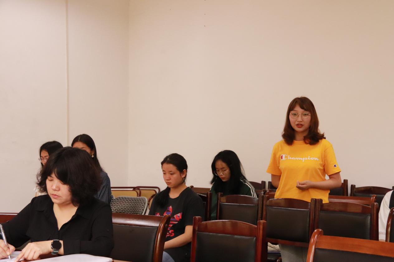 各班学生代表发言。学生代表向学院领导及老师传达班级对于教学以及生活中的一些意见与看法。2017级的学生代表主要针对毕业论文格式问题提问,并向老师表达了感谢之情;2018级学生代表主要反映暑假留校问题、考研问题、博学课学分兑换问题;2019级学生代表反映了选课、课程容量、老师上课方式等问题。