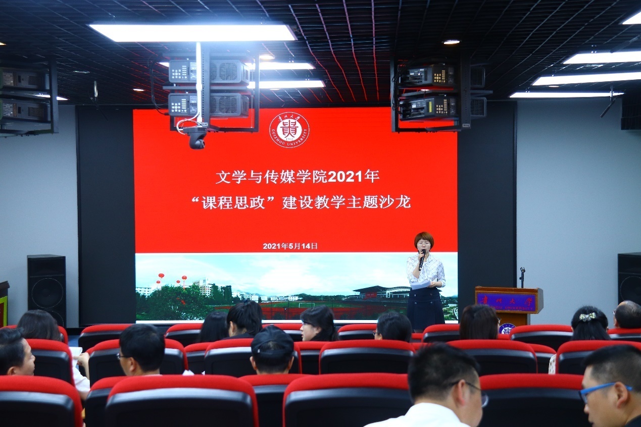 文学与传媒学院入选贵州大学“课程思政”示范课程建设项目的《外国文学》《马列新闻论著选》两门课程的主讲教师杨媛、毛燕妮分享了课程思政的经验。