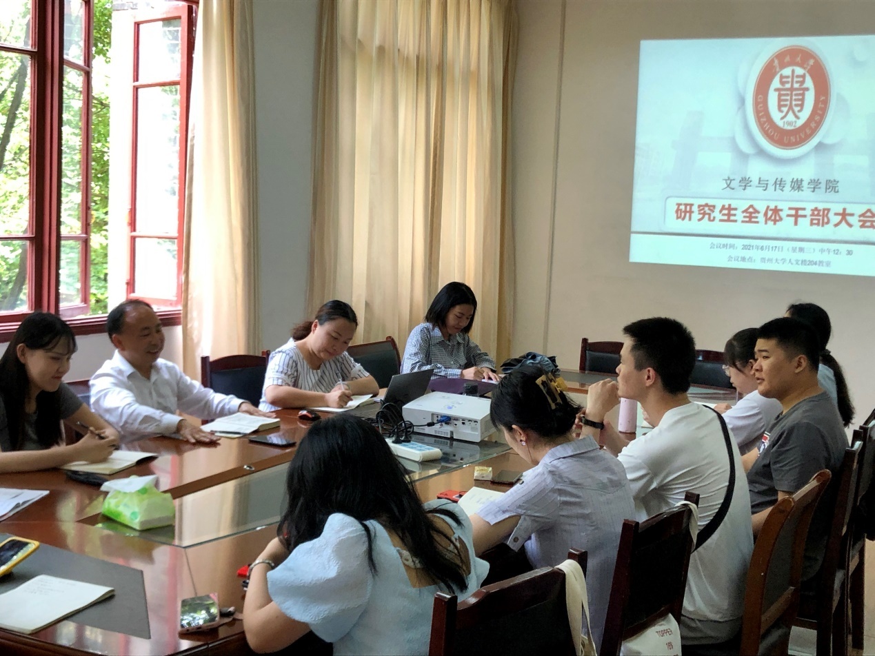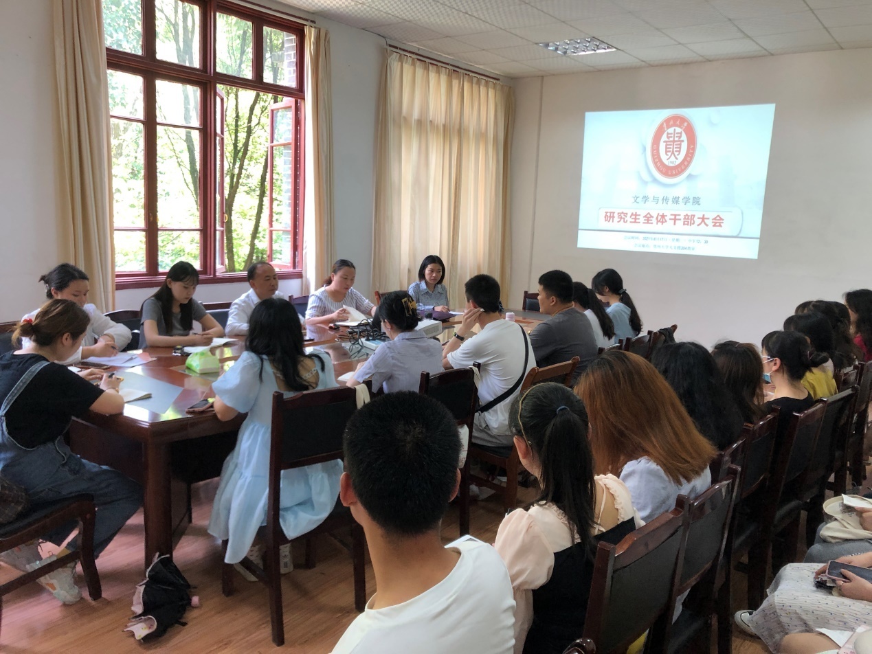 2021年6月17日下午,文学与传媒学院在人文楼204召开研究生全体干部大会,院党委书记李开学出席本次会议。会议由文学与传媒学院思政辅导员姬丹老师主持,学院全体学生干部参会。