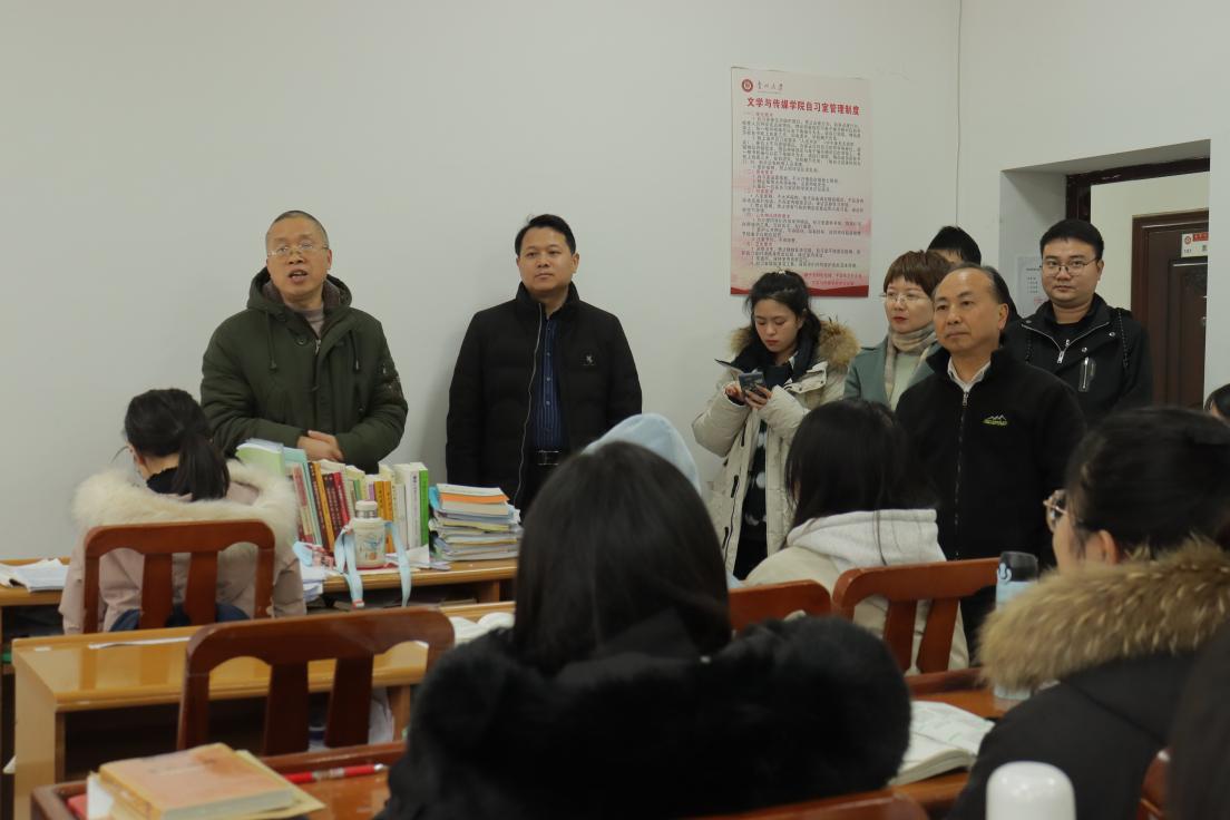 12月20日下午,文学与传媒学院结合疫情防控相关要求,于东校区人文楼开展“考研学子加油站”活动,为备战考研的同学们送上暖心祝福。学院党委书记李开学,院长谭德兴,副书记、副院长唐娟,副院长赵永刚,学院思政辅导员参加本次活动,并为同学们送上考研专属福袋。