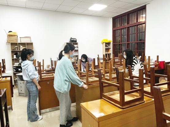 经过将近两小时对自习室布局的重新规划和打扫,自习室又恢复了整洁、干净的模样,希望今后同学们在使用自习室时,能珍惜研会成员们的劳动成果,自觉遵守自习室纪律,爱护自习室环境,保持室内卫生,做文明文传人!