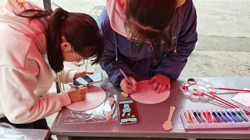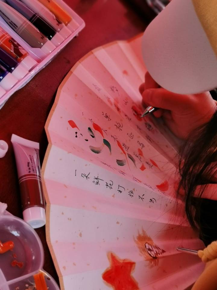 多彩的颜料,黑色的墨汁,纯白的扇子也可以画出代表着奉献的符号。