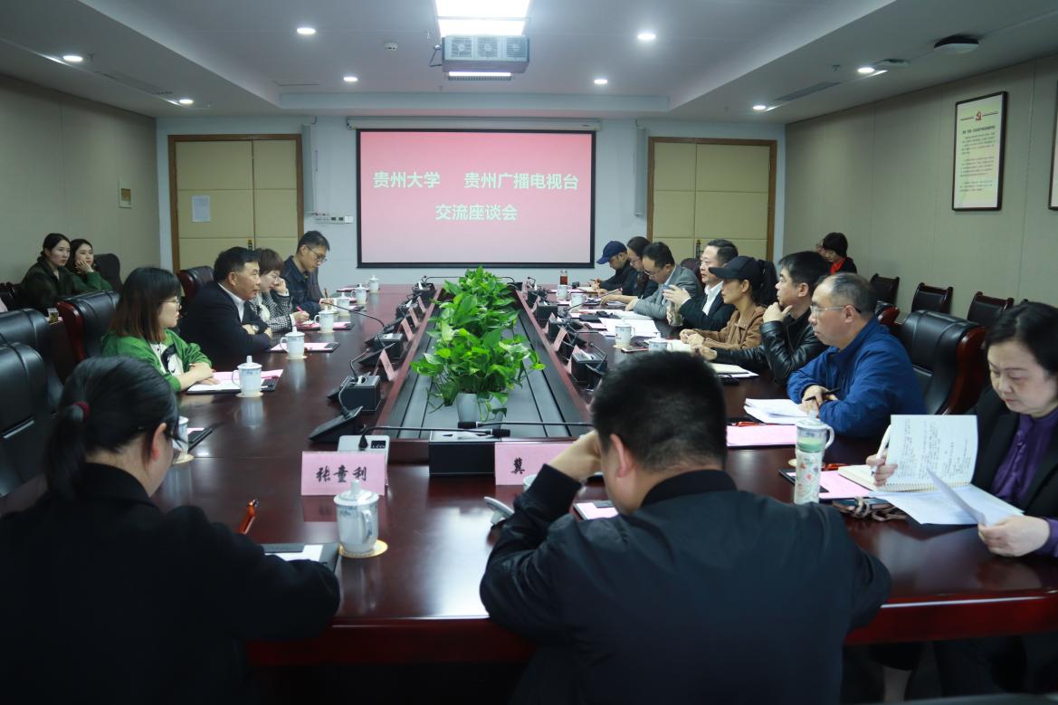 5月23日下午,校党委副书记骆长江带领贵州大学文学与传媒学院师生20余人赴贵州广播电视台开展“访企拓岗”及人才培养调研活动,学院党委副书记副院长唐娟、学生科科长王婷婷、辅导员张健及14名学生参加交流座谈。