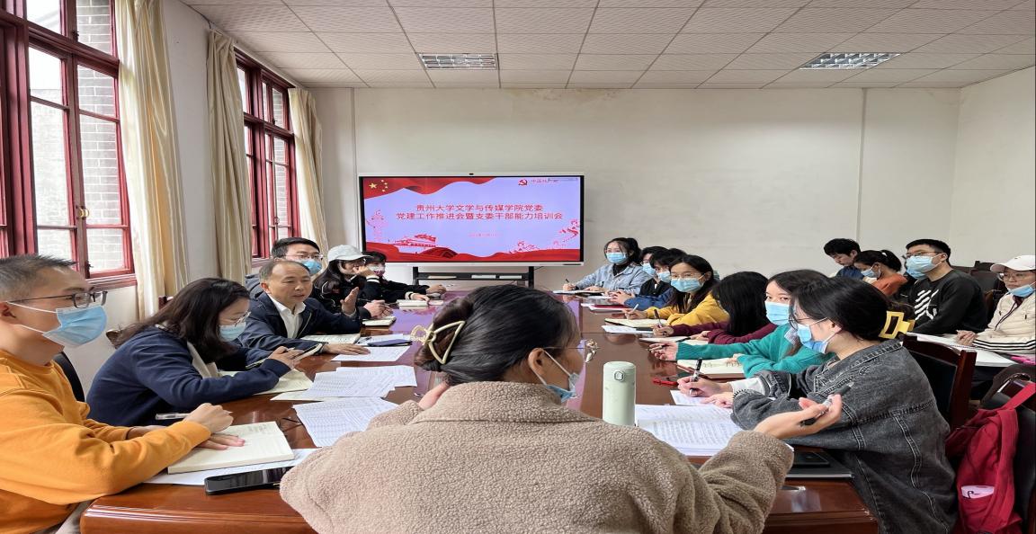 为进一步贯彻落实党的教育方针,围绕立德树人这一根本任务以及贵州大学高质量发展指标,推动我院党组织建设建牢建强,促进我院党员干部成才成长,把牢学生党员发展质量,发挥党员干部先锋模范带头作用,以实际行动迎接党的二十大胜利召开,文学与传媒学院党委于2022年10月11日中午,在人文楼204教室召开了新学期党建工作推进会暨支委干部能力培训会。学院本科生及研究生5个支部支委以上干部共20余人参加了学习,学院党委书记李开学出席并讲话。