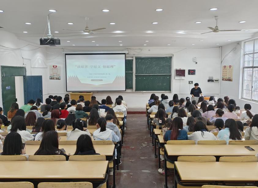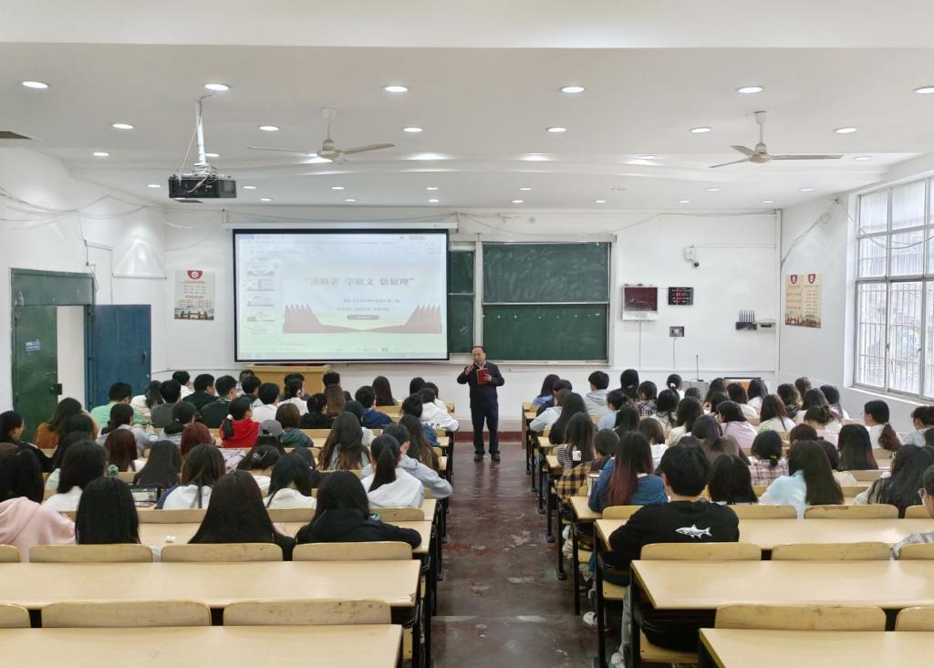 为深入学习贯彻党的二十大精神,深刻领会习近平新时代中国特色社会主义思想的理论内涵和精神实质,切实提高我院学生的政治素养。2024年4月12日我院于逸夫楼515开展“读原著、学原文、悟原理”活动,开云手机客户端登录入口中国有限公司党委书记、学生班主任李开学受邀参加本次理论学习会并发言。本次会议由汉语2201班长马文杰主持,汉语2201团支部、2202团支部、2204团支部全体同学参与学习。