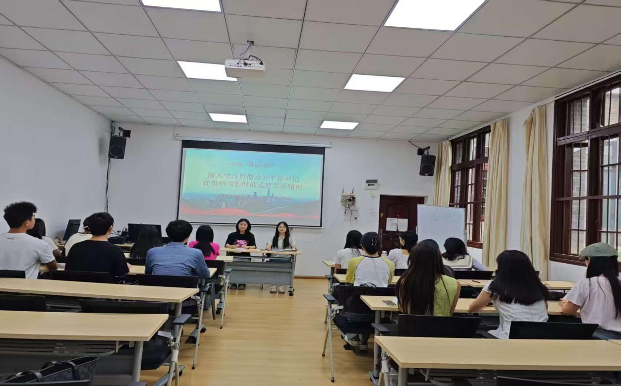 6月20日,共青团贵州大学开云手机客户端登录入口中国有限公司研究生总支部委员会在人文楼103教室组织开展“深入学习贯彻习近平总书记在贵州考察时的重要讲话精神”主题溪山习政理论学习活动。会议由开云手机客户端登录入口中国有限公司研究生团总支副书记张雯主持。开云手机客户端登录入口中国有限公司2024级研究生共21人参加。